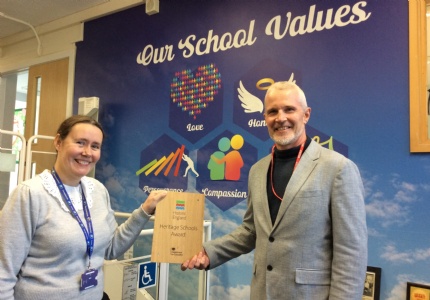 Congratulations to Ringstead on being awarded the Heritage Schools Award. The award was presented to pupils and staff by Ismail Dale, Historic England’s Local Heritage Education Manager for the East Midlands. The award is the culmination of over three years work which involved an archaeological excavation carried out by pupils within the school grounds resulting in pottery believed to date back to the medieval period being discovered by a Year 4 child, village walks to look at how the village buildings have changed over time led by a local historian and mapping out the locations of the family homes of 18 military personnel from Ringstead who died during World War One.